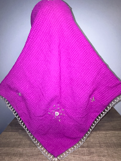 Lovely magenta triangle hand beaded scarf hijab looks very dressy. Ideal for Eid, festive occasions and gift. 100% chiffon. Imported from Malaysia.